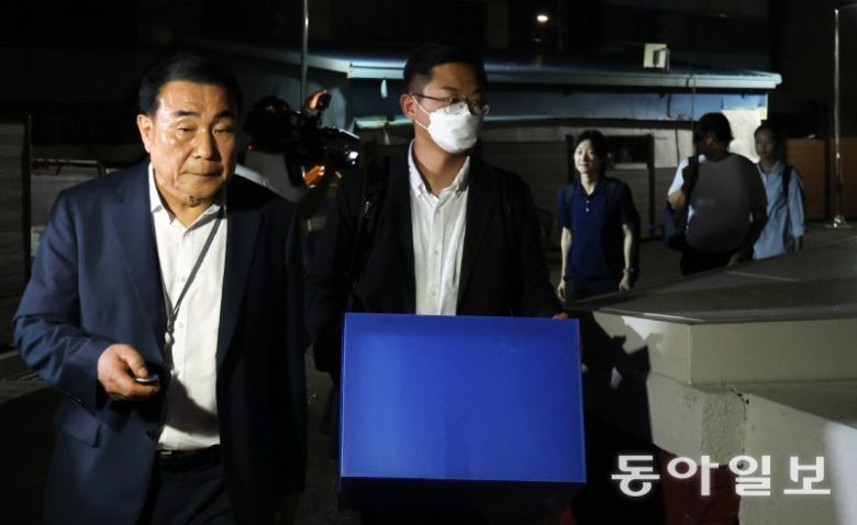 3일 김건희 여사 의혹을 수사하는 민중기 특별검사팀 관계자가 서울 종로구 삼부토건 본사에서 압수물을 가지고 나오고 있다. 특검은 김 여사의 삼부토건 주가조작 연루 의혹을 수사하기 위해 이날 압수수색을 벌였다. 양회성 기자 yohan@donga.com |