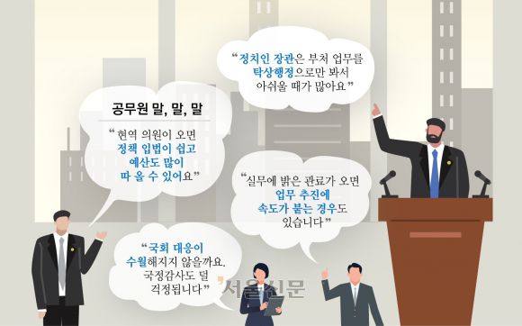 한편으론 긴장감도 흐른다. 새 장관의 업무 스타일에 맞춰야 하는 건 공직사회의 숙명이지만 행정 감각이 부족한 정치인이 오면 업무 부담만 커질 수 있어서다. 한 사회부처 공무원은 “부처 업무를 ‘탁상행정’으로만 생각하고 정책 추진이 왜 이렇게 느리냐고 타박하는 정치인 장관이 가끔 있다”면서 “실무에 밝은 관료가 조직을 이끄는 게 낫다고 생각하는 사람들이 많은 이유”라고 설명했다.
