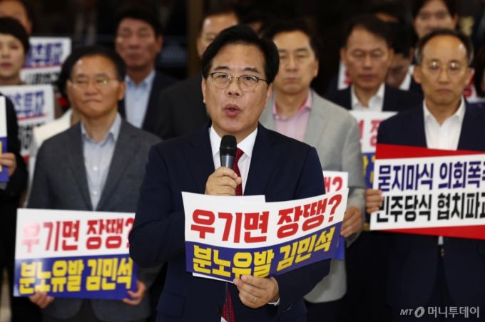 나경원 의원은 지난달 27일부터 이날까지 7일째 국회 본청 로텐더홀에서 김 후보자 지명 철회와 국회 법제사법위원장직 반환을 촉구하며 농성을 벌이기도 했다. 다양한 여론전을 펼쳤으나 167석인 민주당의 김 후보자 임명동의안 처리를 막기는 역부족이었다.