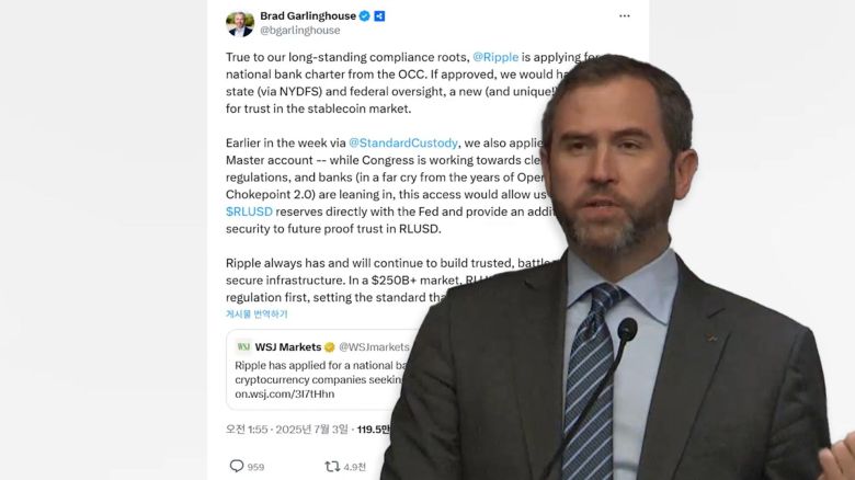 리플의 이런 행보는 자사의 스테이블코인이 연방 당국의 규제·감독을 받는다는 점을 부각하며 투자자들의 신뢰도를 높이려는 전략으로 풀이됩니다.