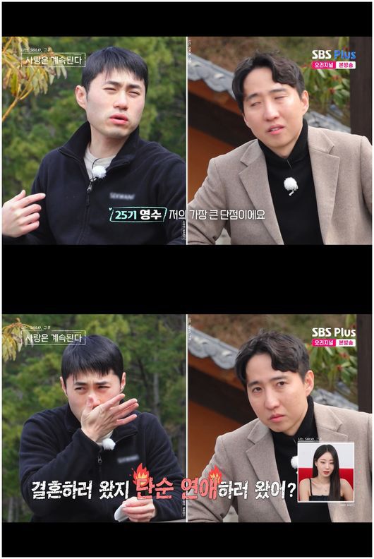 [OSEN=오세진 기자] ‘나는 SOLO, 그 후 사랑은 계속된다’ 솔로 여성 출연자와 남성 출연자의 관계가 줄줄이 불발된 가운데, 25기 영수만이 24기 정숙과 핑크빛 기류를 발현했다.