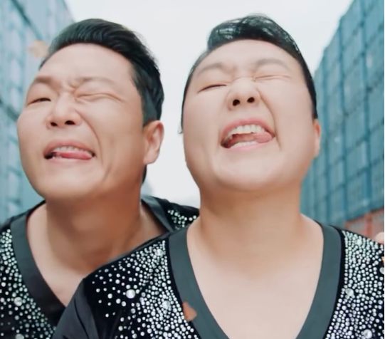 특히 혀를 내민 채 눈을 질끈 감은 클로즈업 컷에서는 누가 싸이인지 말 그대로 “야바위급 혼동”을 일으켰다.