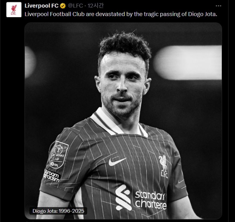 프리미어리그(PL) 리버풀 소속 공격수이자 포르투갈 국가대표인 디오고 조타(28)가 스페인에서 발생한 교통사고로 세상을 떠났다. 함께 차량에 탑승했던 친동생 안드레 조타(26)도 같은 사고로 목숨을 잃었다.