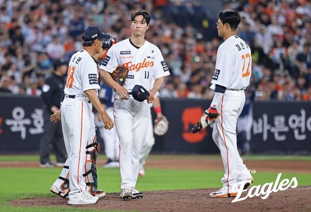 엄상백이 3일 대전 NC전에서 강판되고 있다. 사진=한화 제공