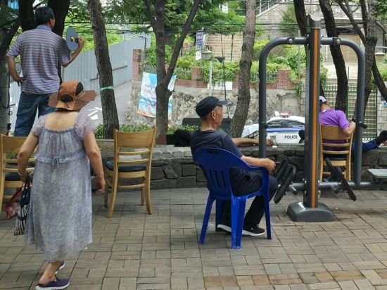 하지만 현실은 녹록지 않다. 2일 오후 서울 용산구 동자동의 쪽방촌에서 만난 전인화씨(70)는 "에어컨이 어디 있겠느냐. 그나마 있는 선풍기도 33도가 넘어가니 뜨거운 바람이 나와서 쓸 게 못 된다"며 "공원에 앉아있는 수밖에 없다"고 하소연했다.