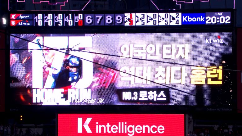 kt 외국인 선수 로하스의 타구가 큰 포물선을 그리더니 담장을 지나 경기장 밖으로 넘어갑니다.