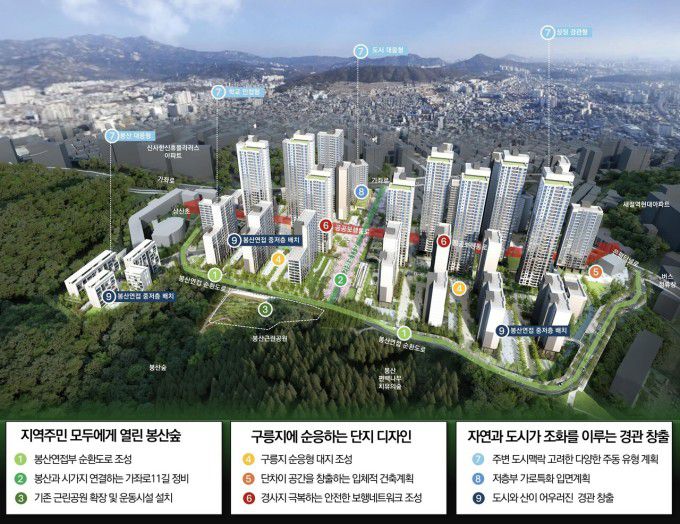 대상지는 봉산근린공원 인근 급경사지의 노후 건축물이 밀집된 지역이다. 2022년 8월 공공재개발 후보지 공모에서 탈락했으나 12월 '산새~편백마을 연계해 통합적 계획 수립' 조건으로 민간재개발 후보지에 선정돼 신통기획으로 정비계획안이 마련됐다. 이번 정비계획안의 수정가결로 봉산을 품은 총 2896가구 조성이 본격화된다.