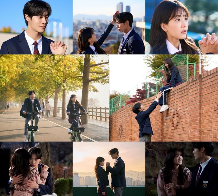첫사랑을 시작한 박성아, 배견우의 모든 순간은 설렘이었다. 은행나무 길을 가로지르는 자전거 데이트 사진에서는 사랑에 빠진 열여덟 청춘의 풋풋함이 고스란히 느껴진다. 높다란 학교 담벼락에 앉은 박성아가 다칠세라 양팔 벌려 기다리는 배견우의 변화는 설렘을 배가한다. 그런 배견우를 바라보는 박성아의 수줍은 웃음 역시 심장을 간질이며 보는 이들을 미소 짓게 한다.