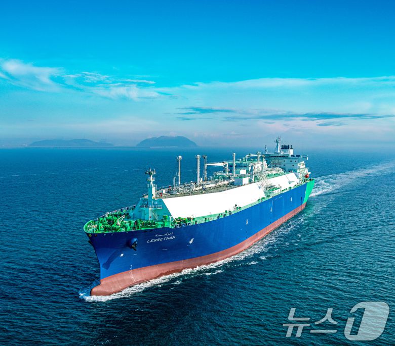 한화오션은 회사가 건조한 200번째 LNG운반선인 ‘레브레사(LEBRETHAH)’호를 SK해운에 20일 인도했다고 밝혔다. . 사진은 ‘레브레사(LEBRETHAH)’호 운항 모습. (한화오션 제공) 2025.2.20/뉴스1 |