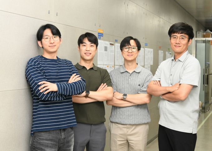 한국표준과학연구원 길이형상측정그룹. 온윤권 학생연구원, 김대희 선임연구원, 장윤수 선임연구원, 엄성훈 선임기술원 (왼쪽부터) /사진=한국표준과학연구원