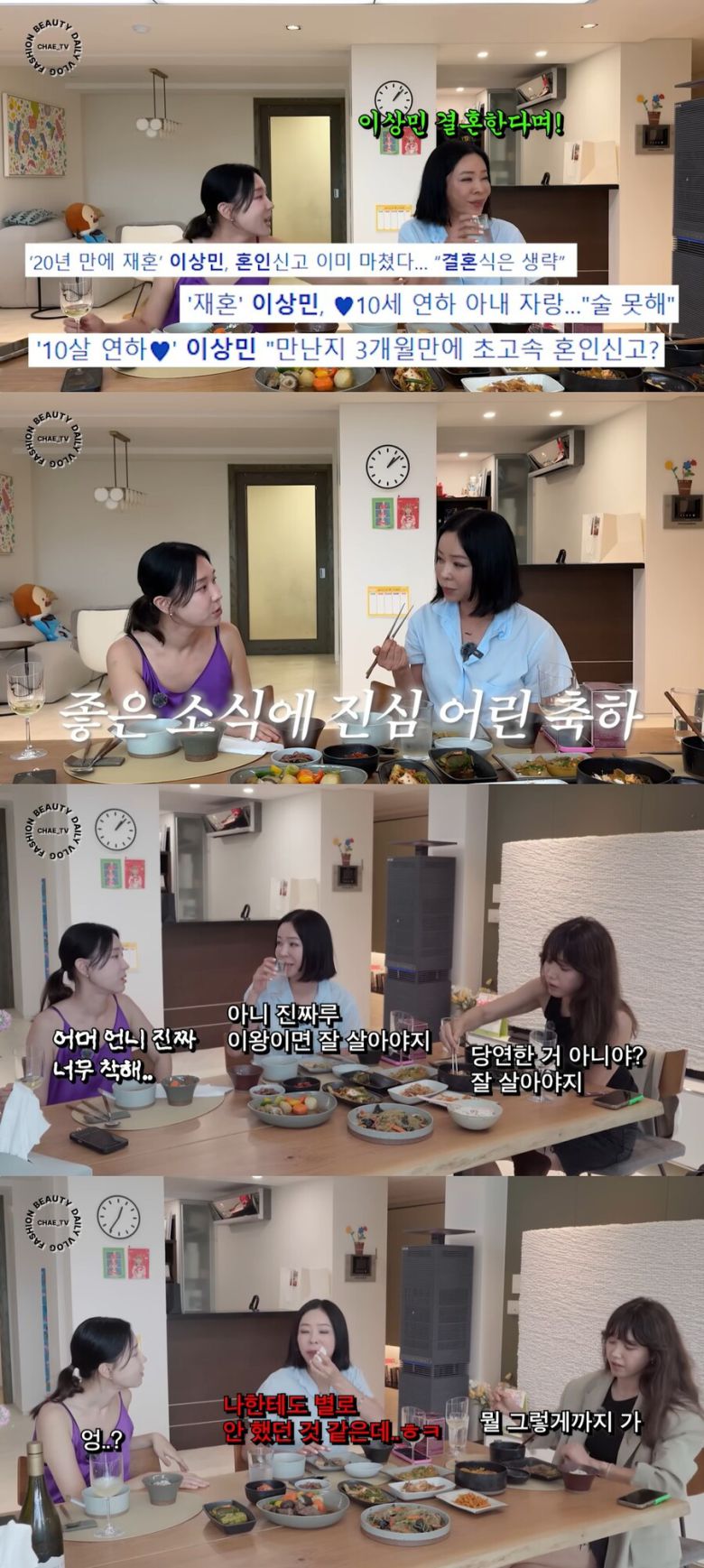 3일 유튜브 채널 '채정안TV'에 '방송에선 못했던 이야기 오늘 다 풀어버려'라는 제목의 영상이 공개된 가운데 이혜영은 재혼한 이상민을 응원하는 언급을 남겼다.