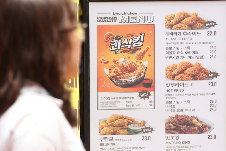 서울의 한 bhc 매장 앞에 내걸린 메뉴판 [연합]