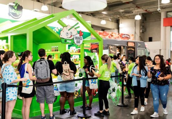 미국 뉴욕에서 열린 '케이콘'에 위치한 CJ제일제당 비비고 부스에서 사람들이 만두를 먹고 있다. [사진=CJ제일제당 제공]