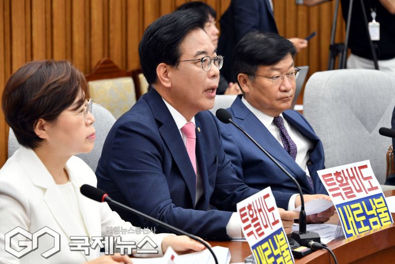 (서울=국제뉴스) 송언석 국민의힘 비상대책위원장 겸 원내대표가 4일 서울 여의도 국회에서 열린 원내대책회의에서 발언하고 있다./사진=이용우 기자