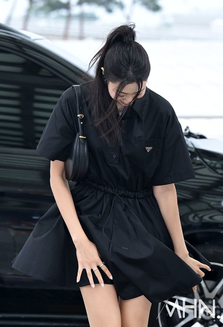 미야오 가원이 출국 전 포즈를 취하고 있다.