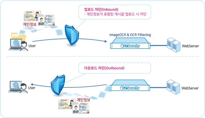 엘세븐시큐리티의 광학문자인식(OCR) 엔진은 이미지 한 장당 평균 0.05초 이하의 속도로 처리되며, 실시간 필터링을 하더라도 웹사이트 성능 저하가 없는 것이 장점이다. 또 다운로드 이용자 수가 월등히 많은 현실을 반영해 대용량 트래픽 처리 기술을 함께 적용, 안정적인 서비스 운영이 가능하다. 또 다운로드 차단 기능을 통해 개인정보 유출을 원천 차단한다.