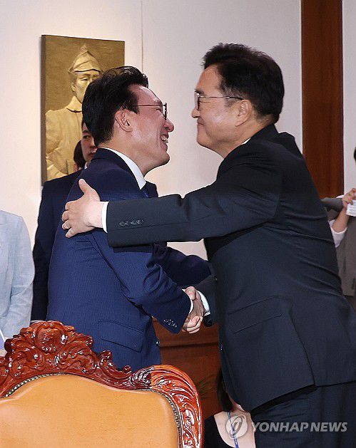 (서울=연합뉴스) 김주형 기자 = 우원식 국회의장(오른쪽)이 4일 국회의장실을 예방한 김민석 국무총리와 인사하고 있다. 2025.7.4 kjhpress@yna.co.kr ▶제보는 카카오톡 okjebo▶연합뉴스 앱 지금 바로 다운받기~▶네이버 연합뉴스 채널 구독하기 <저작권자(c) 연합뉴스, 무단 전재-재배포, AI 학습 및 활용 금지><저작권자(c)연합뉴스. 무단전재-재배포금지.>이 기사의 카테고리는 언론사의 분류를 따릅니다.0공유하기