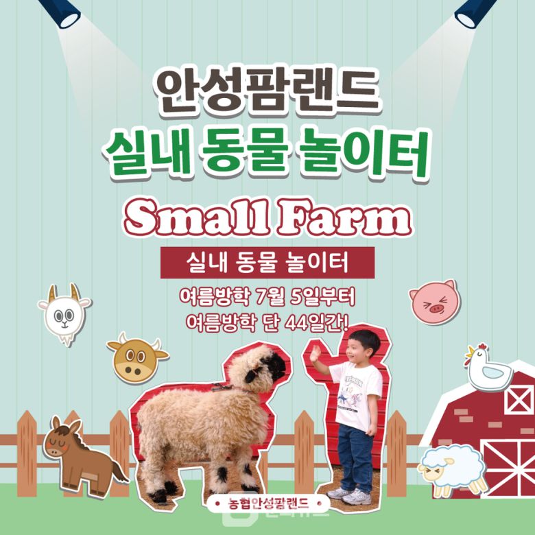 농협 안성팜랜드가 여름철 무더위와 장마 등 날씨에 구애받지 않고 쾌적하게 팜랜드를 즐길 수 있도록 7월 5일부터 8월 17일까지 실내 동물 놀이터 '스몰팜(Small Farm)'을 운영한다고 4일 밝혔다.