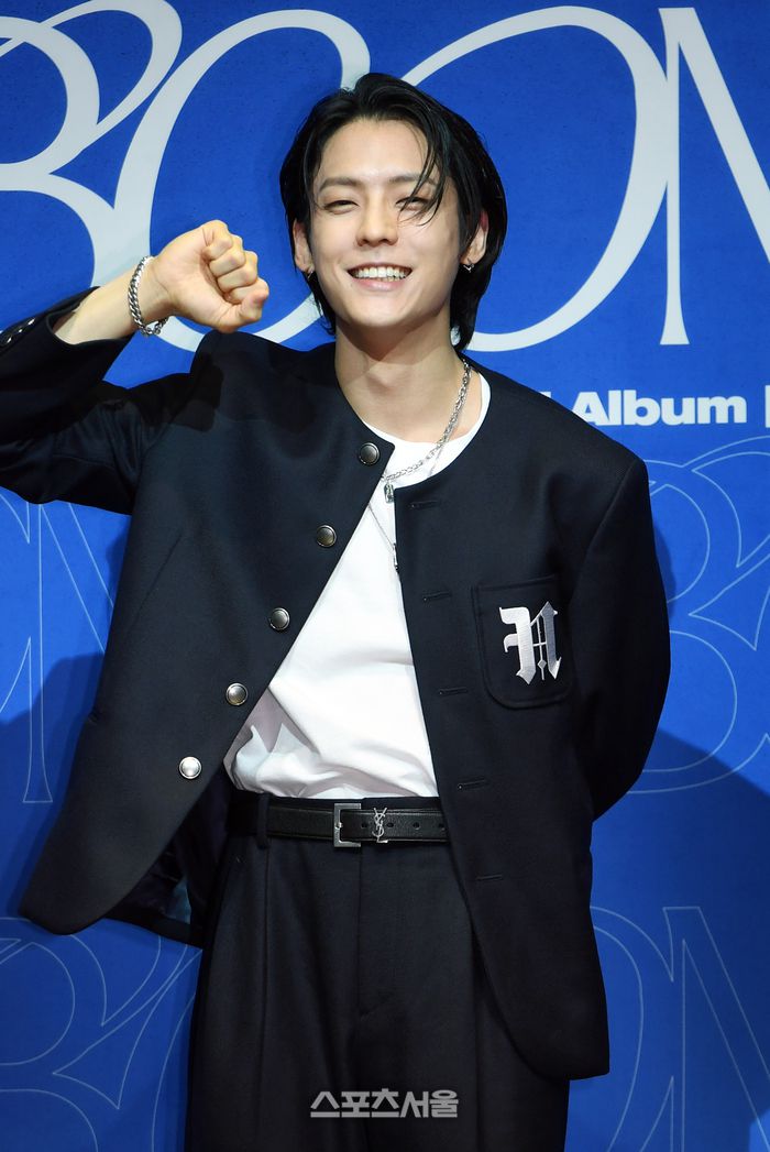 비투비 이민혁(HUTA)이 27일 서울 용산구 블루스퀘어 카오스홀에서 진행된 정규 2집 ‘BOOM’ 발표 기념 기자간담회에서 취재진을 향해 포즈를 취하고 있다. 스포츠서울 DB.