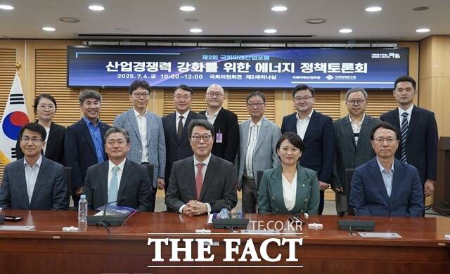 에너지안보가 산업경쟁력의 원천이자 게임체인저로 부상하면서 국가 에너지 정책 틀을 재설계해야 한다는 분석이 나왔다. 국회미래연구원이 4일 서울 영등포구 국회의원회관에서 개최한 '제2회 국회미래산업포럼'에서 발제자들이 사진촬영을 하고 있다. /국회미래연구원