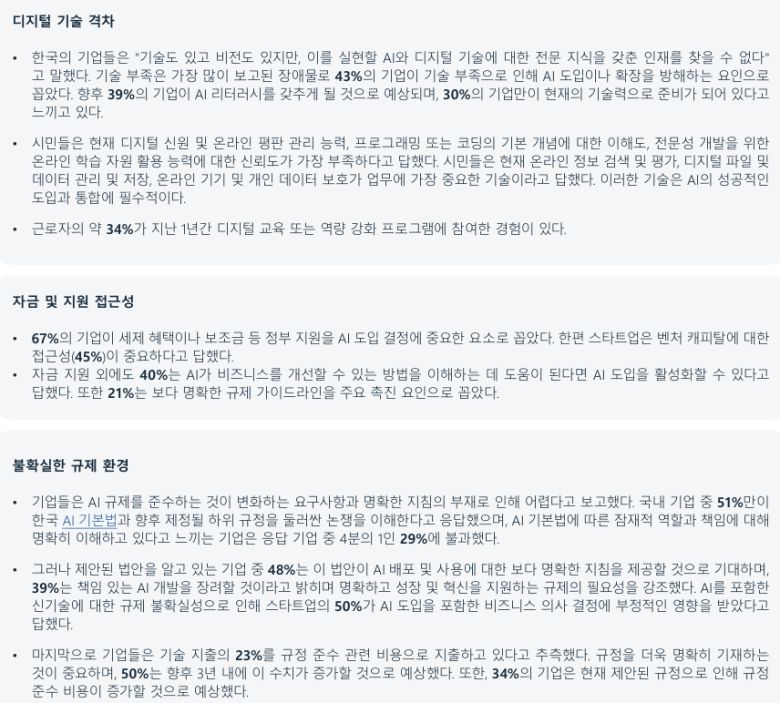 보고서는 한국 기업들이 AI를 통해 더 높이 도약하는 것을 가로막는 세 가지 구조적인 장벽을 지목했다.