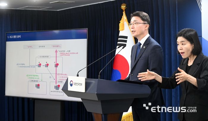 류제명 과학기술정보통신부 2차관이 4일 서울 종로구 정부서울청사에서 SK텔레콤 침해사고 최종 조사결과 발표를 하고 있다. 김민수기자 mskim@etnews.com |
