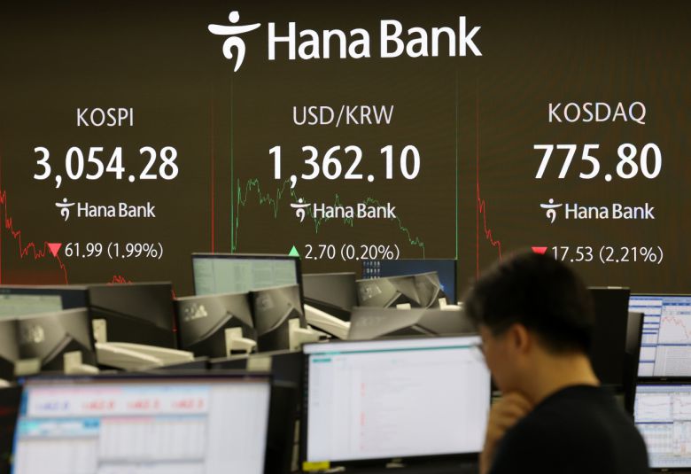 미국의 상호관세 유예 만료를 앞두고 투자자들의 관망세가 짙어진 가운데, 기관 투자자의 매도세에 국내 증시가 약세를 보였다. 4일 코스피는 전 거래일보다 61.99포인트(1.99%) 내린 3054.28에 거래를 종료했다. 기관은 4442억원을 순매도한 반면, 개인과 외국인은 각각 2573억원, 1625억원씩 순매수했다.