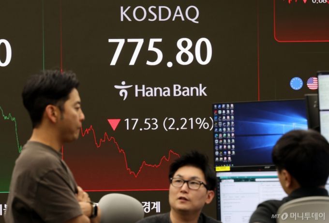 코스닥은 전날 대비 17.53포인트(2.21%) 내린 775.80을 기록했다.