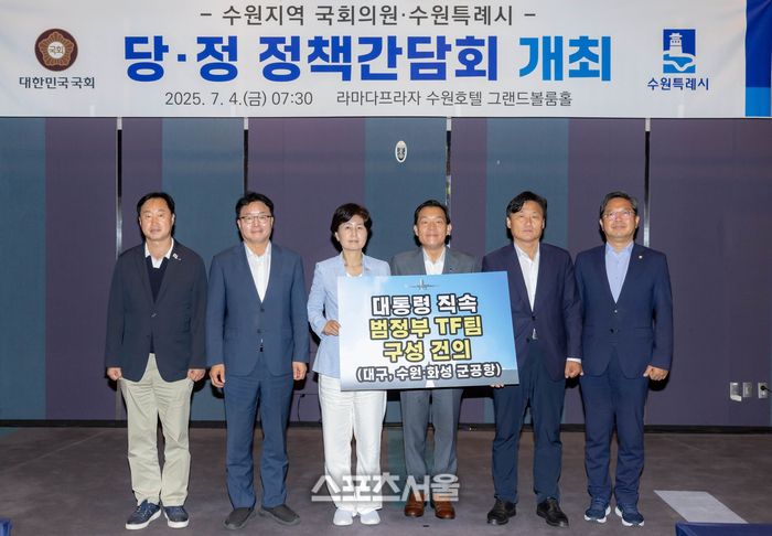 〔스포츠서울│수원=좌승훈기자〕이재준 수원특례시장과 수원 지역 국회의원들은 정부에 ‘대통령 직속 범정부 수원 군공항 이전 TF 확대 구성’을 건의한다.
