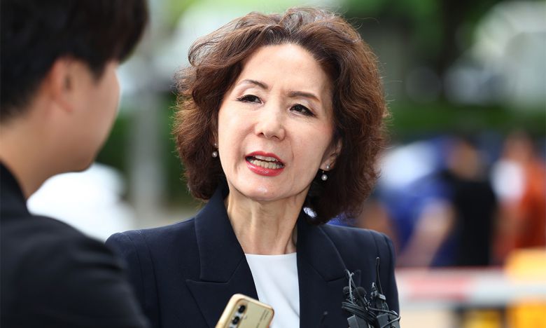 이진숙 사회부총리 겸 교육부 장관 후보자가 지난 6월 30일 서울 여의도 한국교육시설안전원에 마련된 인사청문회 준비 사무실로 출근하며 취재진 질문에 답하고 있다. 연합뉴스