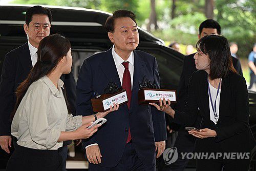 윤석열 전 대통령 고검 현관으로 출석(서울=연합뉴스) 서명곤 기자 = 윤석열 전 대통령이 지난달 28일 피의자 신분으로 내란특검 조사를 받기 위해 서울 서초구 서울고검 청사로 출석하고 있다. 2025.6.28 [공동취재] seephoto@yna.co.kr