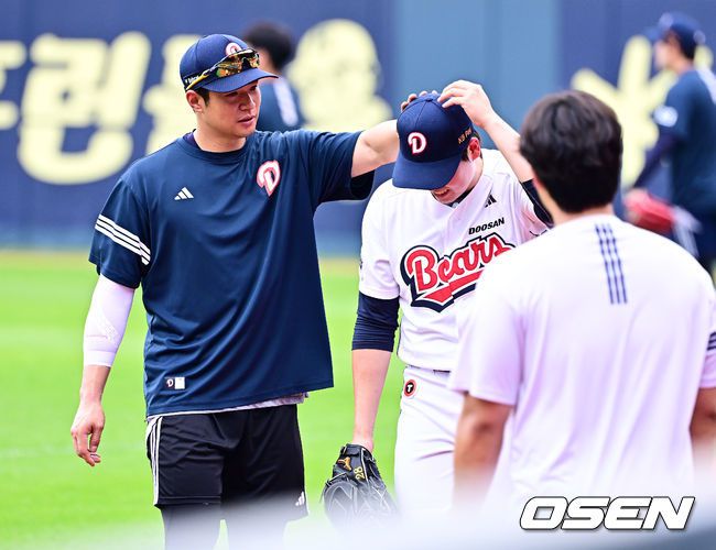 [OSEN=잠실, 지형준 기자] 4일 오후 서울 잠실구장에서 ‘2025 신한 SOL Bank KBO리그’ 두산 베어스와 KT 위즈의 경기가 열렸다. 두산은 잭로그, KT는 오원석이 선발로 나섰다. 경기에 앞서 두산 김재환이 자신의 연습 타구에 머리 부위를 살짝 맞은 최승용을 찾아 상태를 체크하고 있다. 2025.07.04 /jpnews@osen.co.kr 이 기사의 카테고리는 언론사의 분류를 따릅니다.0공유하기