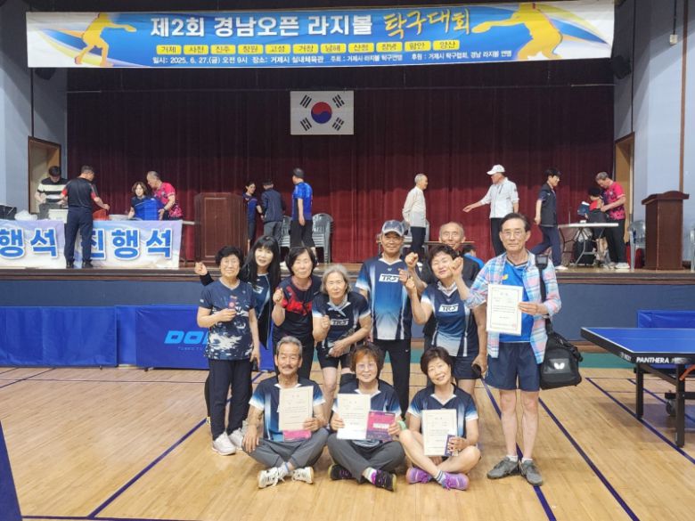 6월27일 거제시에서 열린 제2회 경남오픈 라지볼 탁구대회에 참가한 고성군 동해면 라지볼 팀은 △통합 부 개인 단식 준우승 △통합 부 단체전 우승 △여자 2그룹 개인 단식 3위 등 총 3개 부문에서 수상하는 값진 성과를 올렸다. 경남오픈 탁구대회는 경남에 거주하는 65세 이상 라지볼 탁구동호인 단체들이 참여하는 대회이다.