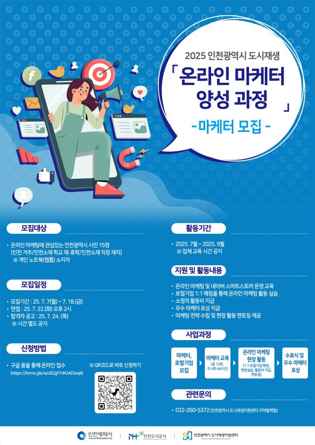 인천광역시 도시재생지원센터(센터장 박형균)는 원도심의 지역경제 활성화와 로컬기업의 디지털 전환을 지원하기 위한 ‘2025년 원도심 로컬기업 지원사업(온라인 마케터 양성사업)’을 이번 달부터 본격 추진한다고 4일 밝혔다.