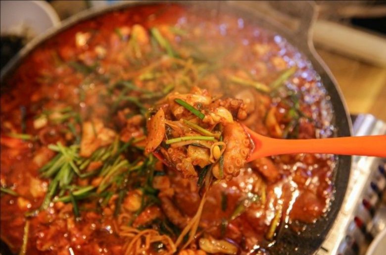 이곳에서는 낙지가 통째로 들어간 철판 낙지 볶음을 대표 메뉴로 선보인다. 쫄깃하면서도 부드러운 식감의 수육 전골도 인기가 좋다.