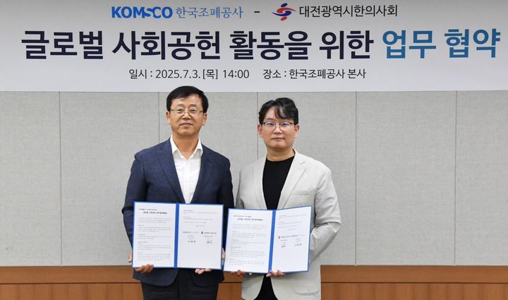 [대전=뉴시스]한국조폐공사는 3일 본사 회의실에서 대한한의사협회 산하 대전광역시한의사회와 함께 글로벌 사회공헌 활동을 위한 업무협약(MOU)을 체결했다. 2025. 07. 04 photo@newsis.com *재판매 및 DB 금지 |