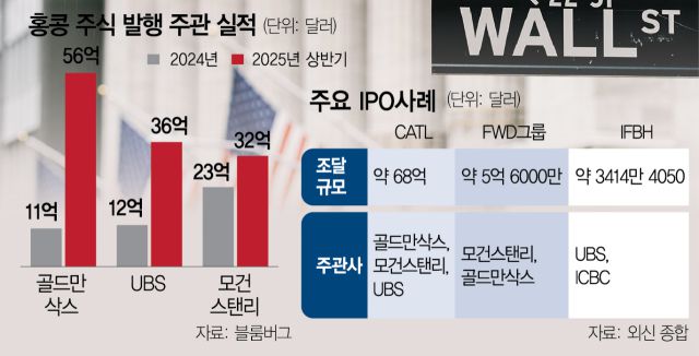 3일(현지 시간) 블룸버그통신은 골드만삭스그룹이 올 들어 홍콩 주식시장에서 주관한 기업공개(IPO) 등 주식 발행 규모가 56억 달러(약 7조 6278억 원)를 기록해 1위를 차지했다고 보도했다. 2위는 36억 달러를 조달한 UBS, 3위는 모건스탠리(32억 달러)가 차지했다.