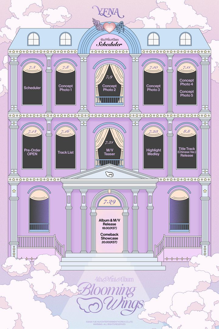 최예나는 4일 자정 공식 SNS를 통해 네 번째 미니앨범 'Blooming Wings(블루밍 윙스)'의 스케줄러 포스터를 공개했다.
