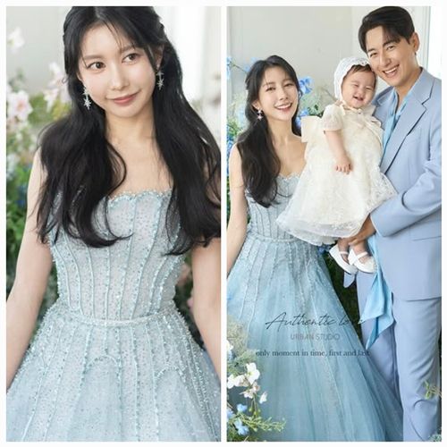 공개된 사진 속 아야네는 하늘색 시스루 드레스를 입은 채 남편 이지훈, 딸 루희와 함께 포즈를 취하고 있다. 같은 톤의 슈트를 입은 이지훈, 아이보리 드레스를 입은 딸과 함께한 컷은 한 장면의 영화처럼 연출됐다.
