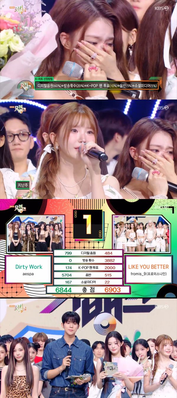 4일 방송된 KBS2 '뮤직뱅크'에는 에스파 '더티 워크(Dirty Work)'와 프로미스나인 '라이크 유 베터(LIKE YOU BETTER)'가 1위 후보에 올랐다.