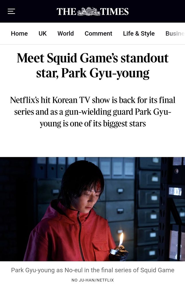 '더 타임스'(The Times)는 박규영을 넷플릭스 시리즈 '오징어 게임' 시즌3의 라이징 스타로 소개하며, 시즌3 서사를 이끄는 여성 캐릭터 중 가장 중심이 되는 인물로서 인터뷰를 공개했다.