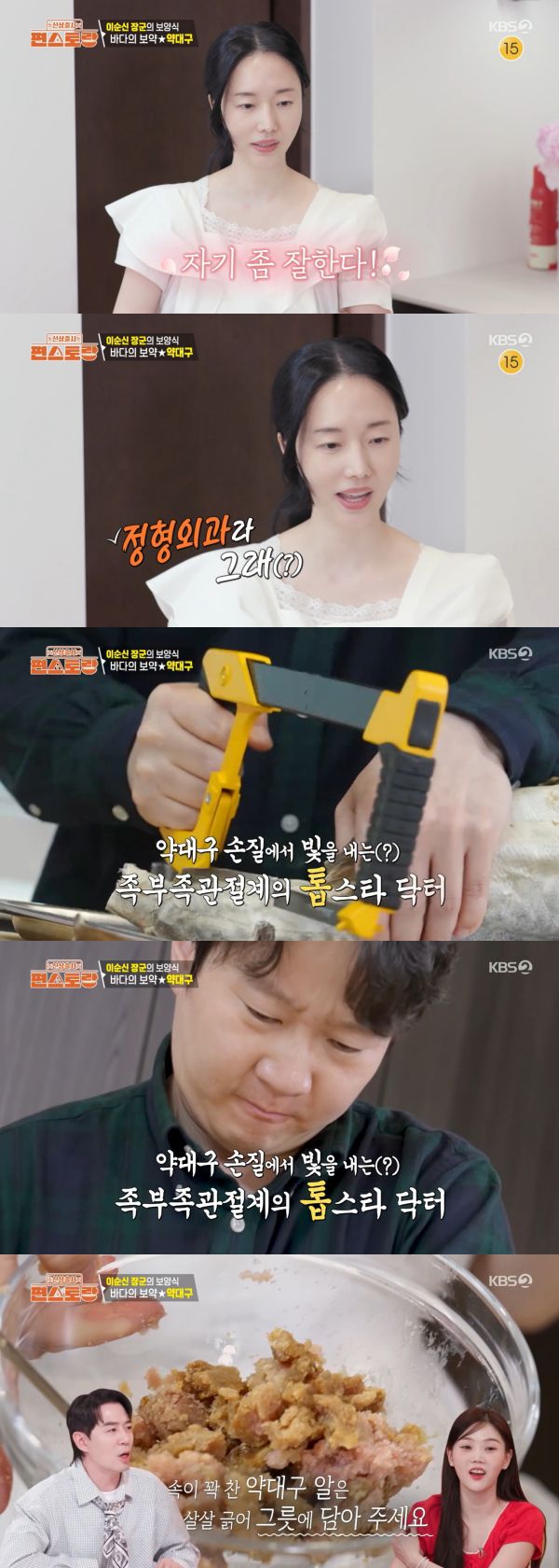 이날 이정현은 약대구를 자르기 위해 톱을 들었다. 약대구는 이순신 장군의 보양식으로 알려졌을 만큼 맛이 좋다고.