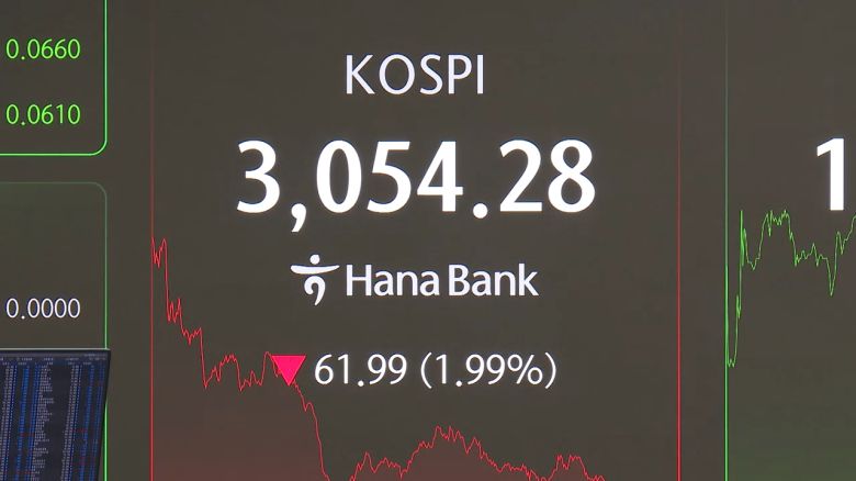 2% 가까이 하락하며 3,050선으로 뒷걸음질친 코스피.