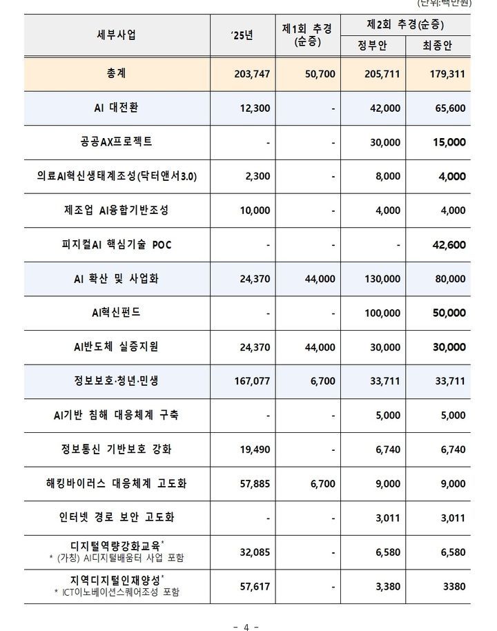 [서울=뉴시스] 심지혜 기자 = 과학기술정보통신부는 4일 열린 본회의에서 총 1793억원 규모의 인공지능(AI) 분야 제2차 추가경정예산안이 의결됐다고 밝혔다.