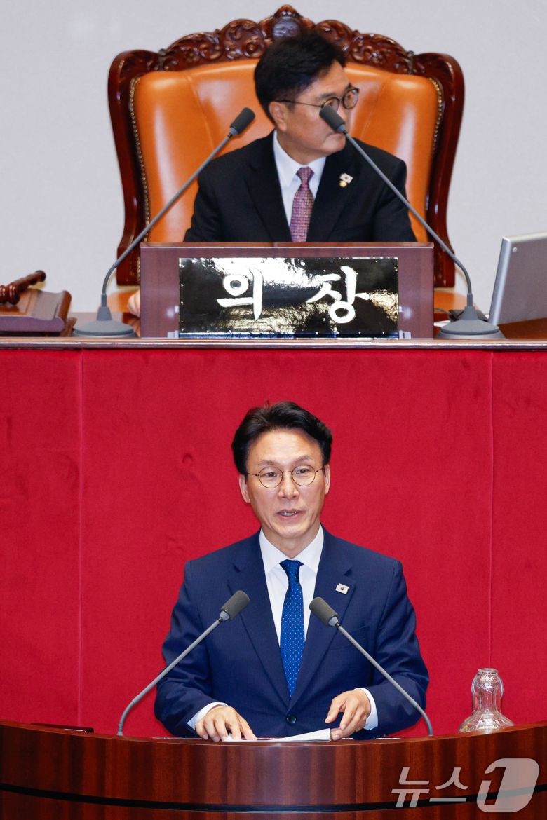 (서울=뉴스1) 안은나 기자 = 김민석 국무총리가 4일 오후 서울 여의도 국회에서 열린 제426회국회(임시회) 제5차 본회의에서 2025년도 제2회 추가경정예산안 통과에 대한 정부측 인사말을 하고 있다. 2025.7.4/뉴스1