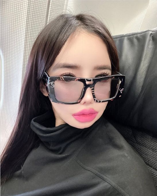 길게 늘어진 붙임머리와 매끈한 실루엣의 블랙 의상, 샤넬 프레임의 유니크한 선글라스까지 작은 기내 좌석 안에서도 존재감은 꽉 찼다. 배경은 공항 좌석이지만, 분위기는 무대 뒤 리허설실을 연상케 했다.