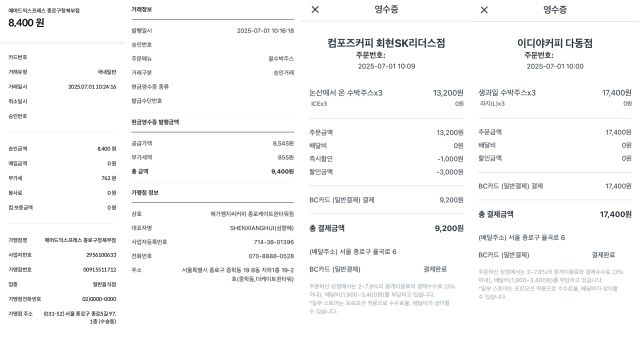 미안한 얘기지만 넷 중에 최하위. 수박색이 나는 설탕물이라고 정의하겠다. 단 맛이 강한데 그냥 시럽맛. 4000원도 아깝다. 메가커피에서는 그냥 아이스 아메리카노를 사 먹겠다.