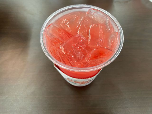 수박 국물에 물 탄 느낌. 맹물 맛이 강하게 느껴짐. 슬러시도 아니고 그냥 수박물. 시원한 맛으로만 먹을 수 있을 것 같은데 단맛도 약해서 다시 사먹을 것 같진 않다.