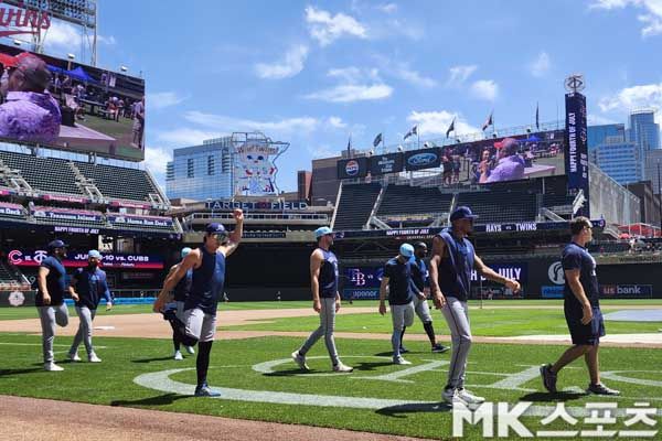 김하성이 경기전 스트레칭으로 몸을 풀고 있다. 사진(美 미니애폴리스)= 김재호 특파원