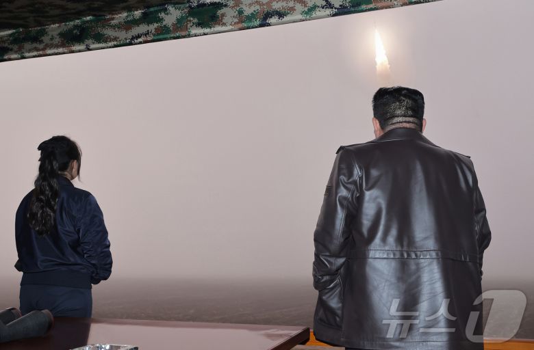 (평양 노동신문=뉴스1) = 김정은 북한 노동당 총비서가 김주애와 함께 대륙간탄도미사일(ICBM) '화성-19형' 발사를 지켜보고 있다. [국내에서만 사용가능. 재배포 금지. DB 금지. For Use Only in the Republic of Korea. Redistribution Prohibited] rodongphoto@news1.kr |